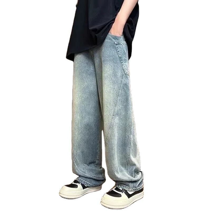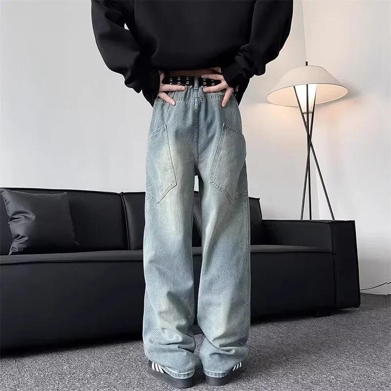 Vintage Casual Wide-leg Jeans for Men Women Loose Denim Trousers American Style Hip Hop Cargo Pants Streetwear Washed Technics