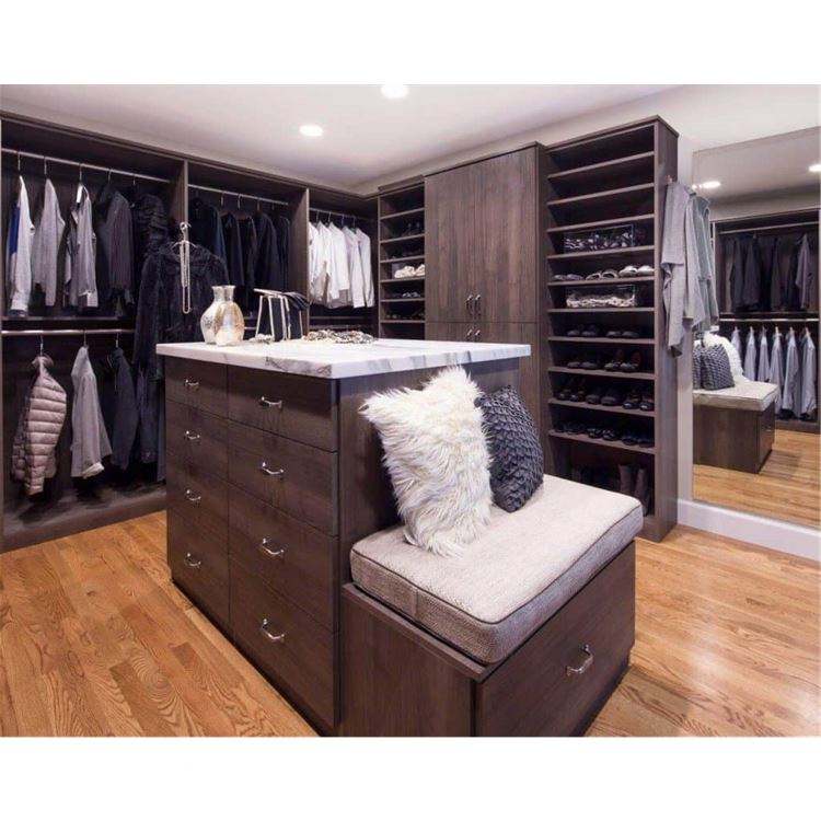 American Style Wooden Open Wardrobe Storage Cabinet Closet Shelves Organizer Walk in Closet With Island