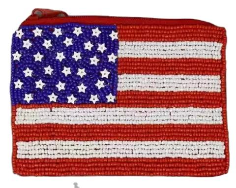 American Flag Design Hand Pouch Seed Bead Embroidered Handmade Coin Purse With Customized Color for Women and Girl