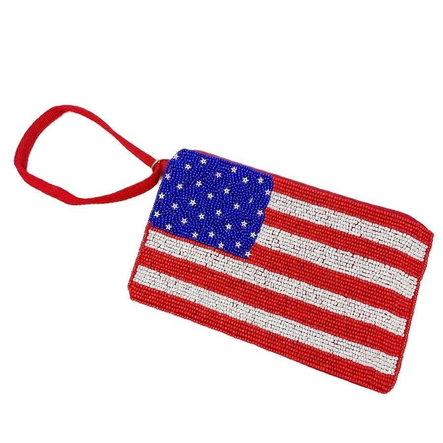 American flag design coin purse seed bead embroidered handmade coin purse with customization for women and girl