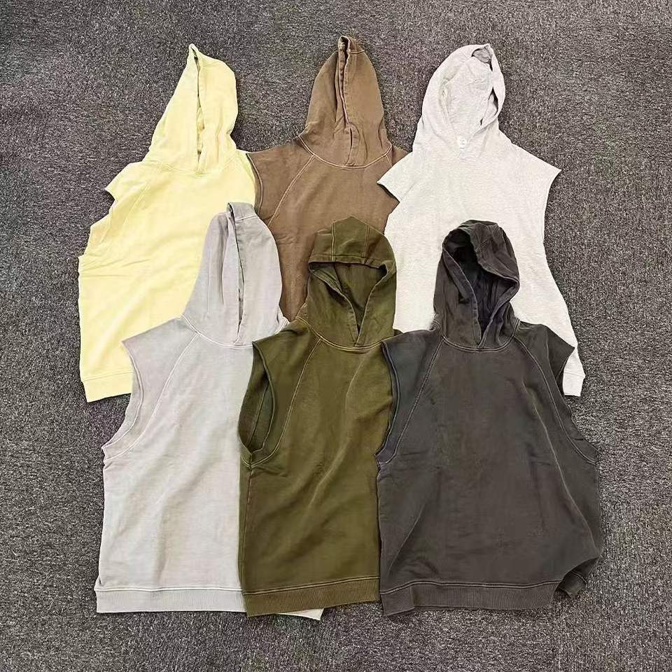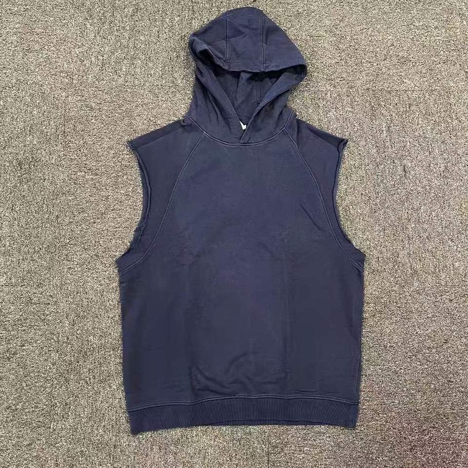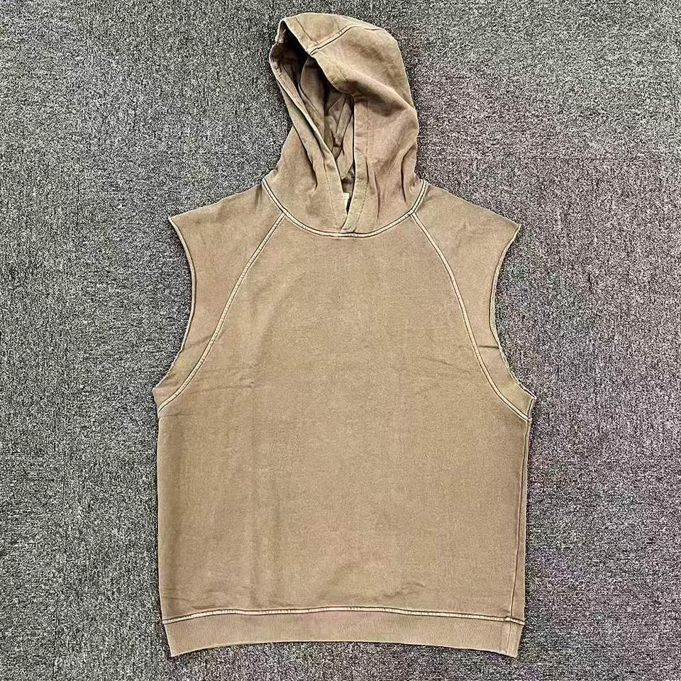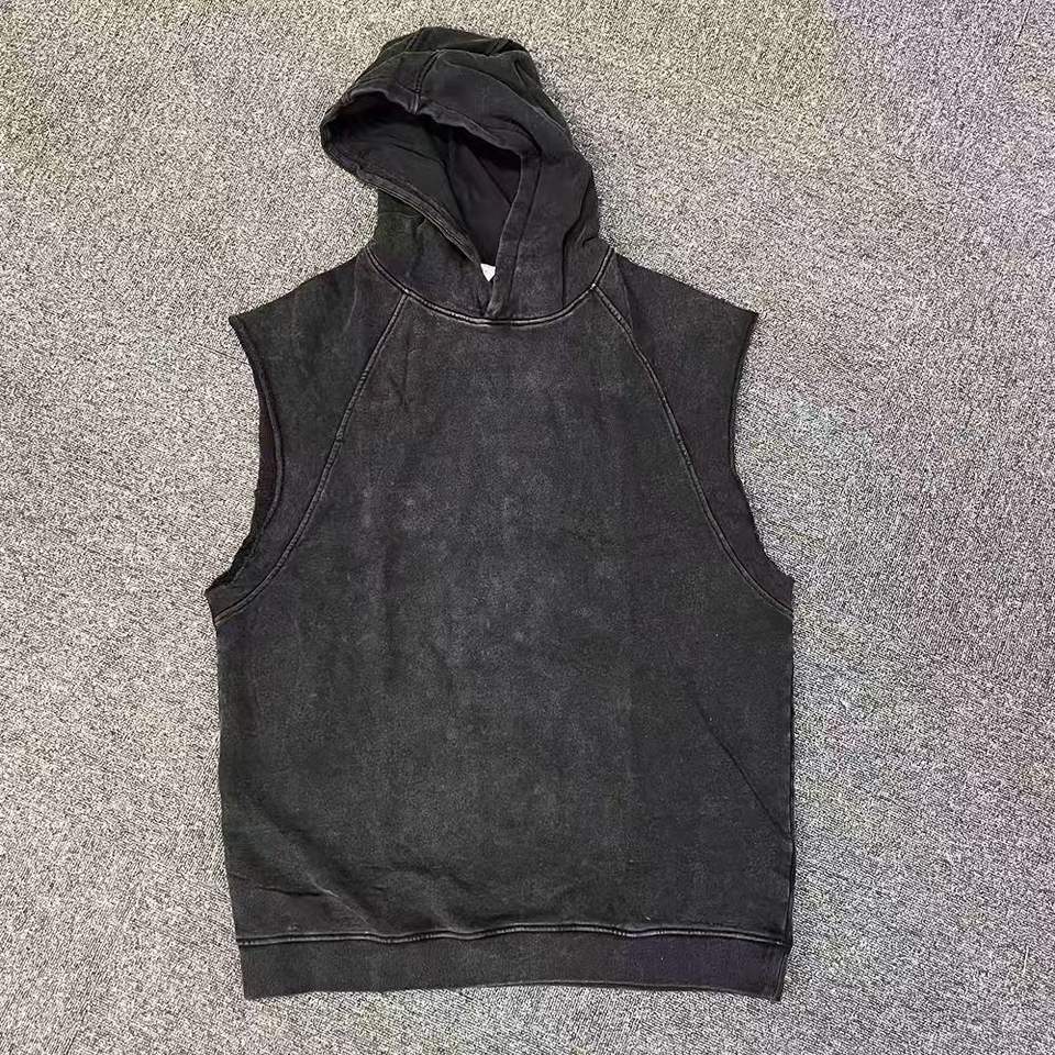 American retro heavyweight vintage style hooded Sweatshirt high street Graphic outfit hip-hop rock sleeveless hoodies