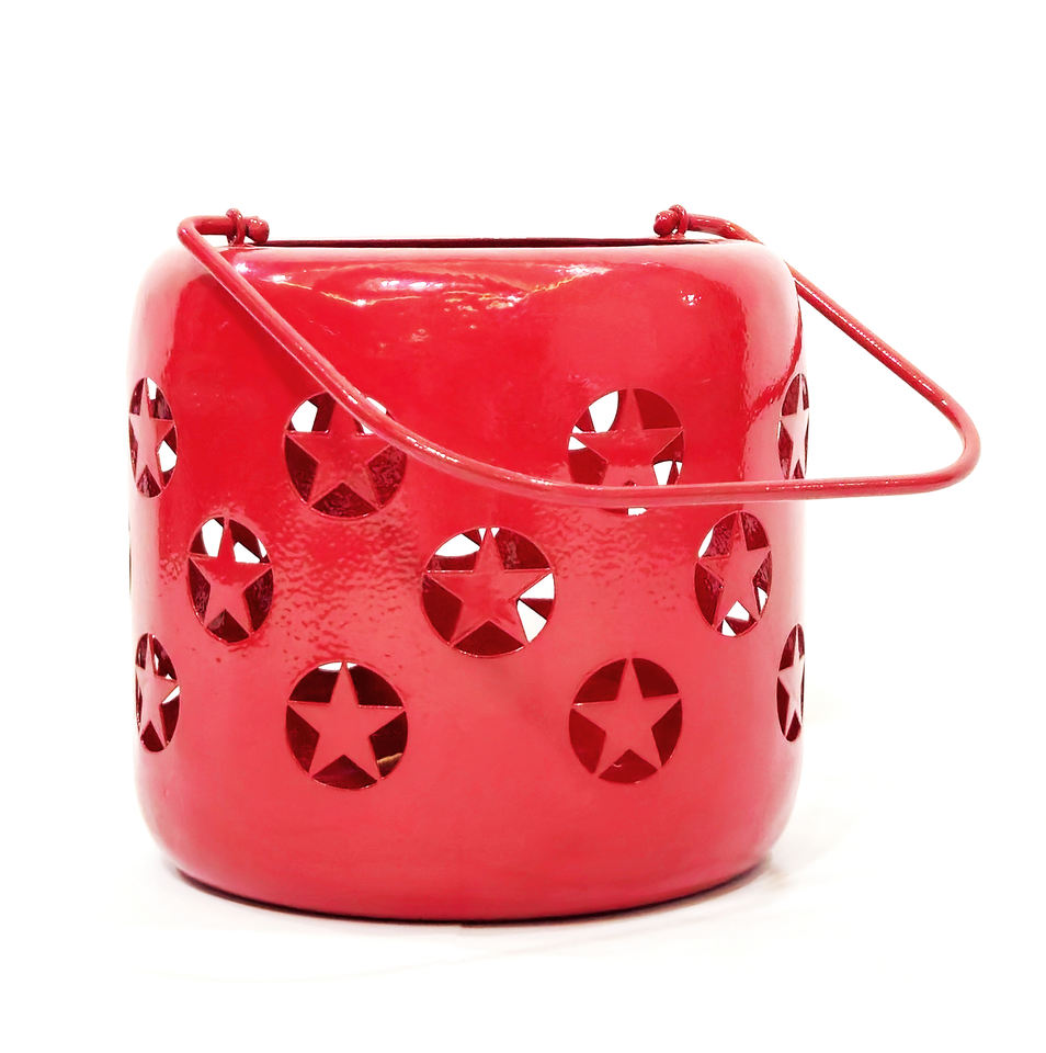 Americana Round Shape Candle Lantern Star Cutout Decorative Bucket Candle Holder with Customized for Indoor-Outdoor Home Decor