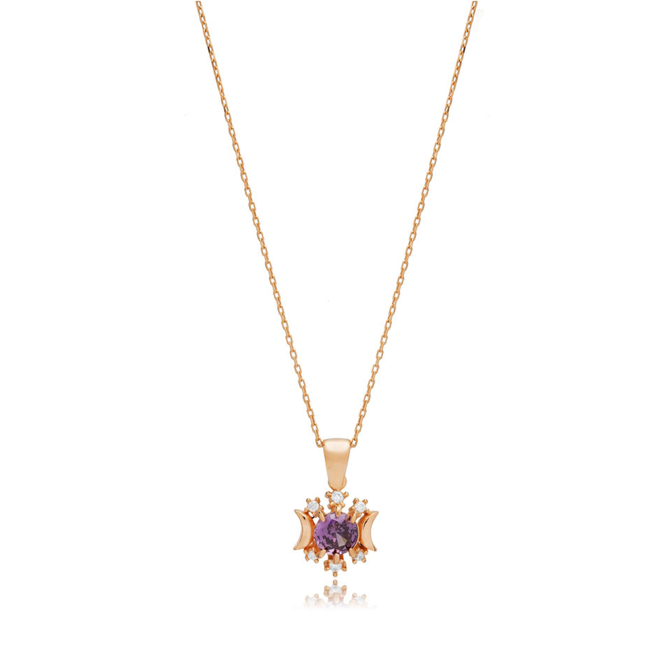 Amethyst CZ Round Cut Design Stone Charm Silver Necklace Wholesale Turkish Handmade 925 Sterling Silver Jewelry