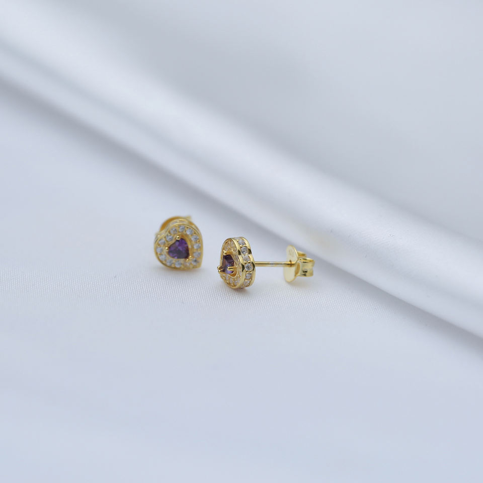Amethyst CZ Stone Heart Design Silver Stud Earrings Turkish Wholesale 925 Sterling Silver Women Jewelry