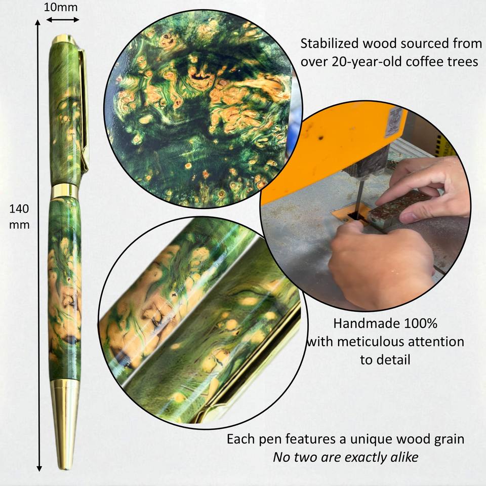 Amethyst Collection HHPEN AMT-425 Handcrafted Feather Multi-Functional Novelty Pen Stabilizer Vietnam Coffee Wood Green-Red-Blue