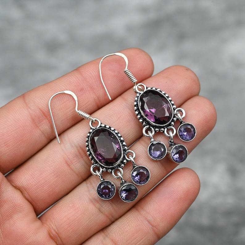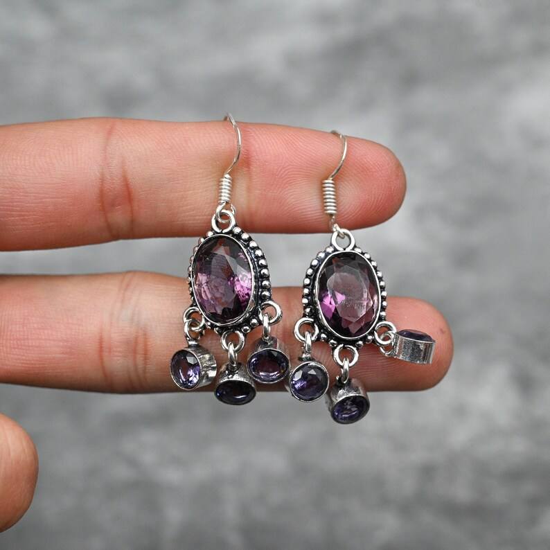 Amethyst Earrings 925 Sterling Silver Handmade Gemstone Earrings Jewelry Gift For Her Mother Women Luxury Fashion