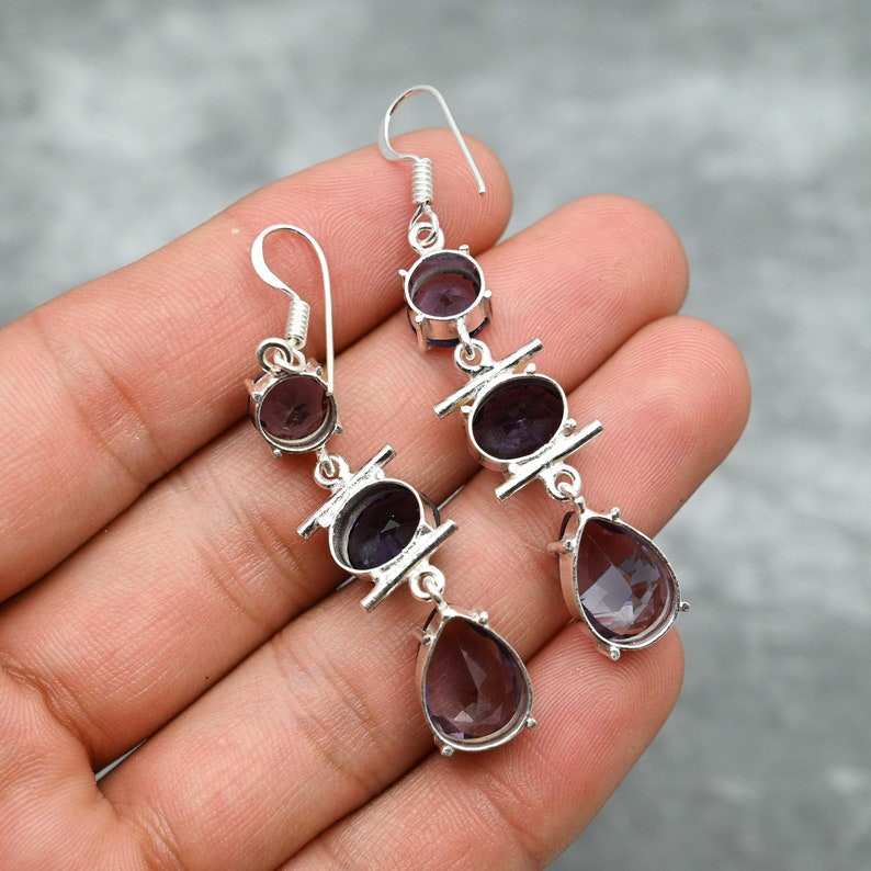 Amethyst Earrings 925 Sterling Silver Handmade Gemstone Earrings Jewelry Gift For Her Mother Elegant Amethyst Jewelry