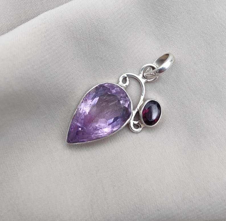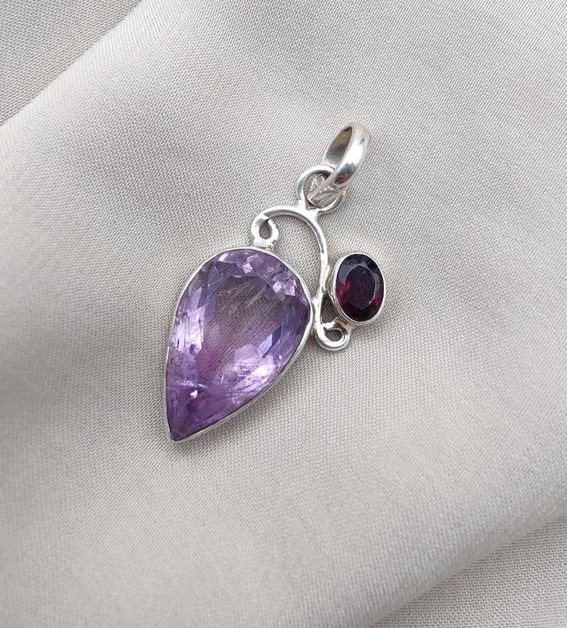 Amethyst Garnet Pendant 925 Sterling Silver Handmade Jewelry Women Men Unique Gemstone Necklace Gift Elegant