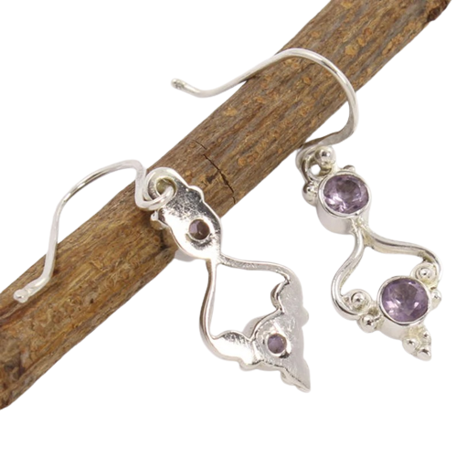 Amethyst Gemstone Earrings 925 Solid Sterling Silver Round Pearl Earrings for Women Girls, Dangle Earrings Silver, Silver