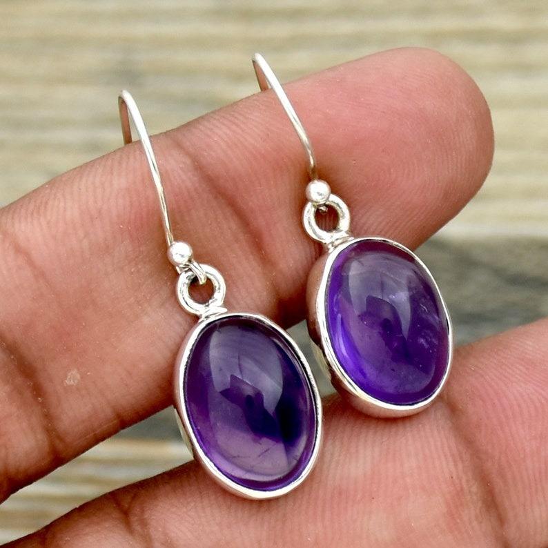 Amethyst Gemstone High Quality Dangle Earrings 925 Solid Sterling Silver Earrings for Women Girls Earrings Silver Jewellery