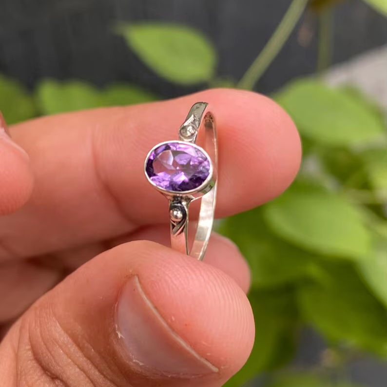 Natural Amethyst Gemstone Ring 925 Sterling Silver Handmade Luxury February Birthstone Jewelry for Women Elegant Fashion Gift