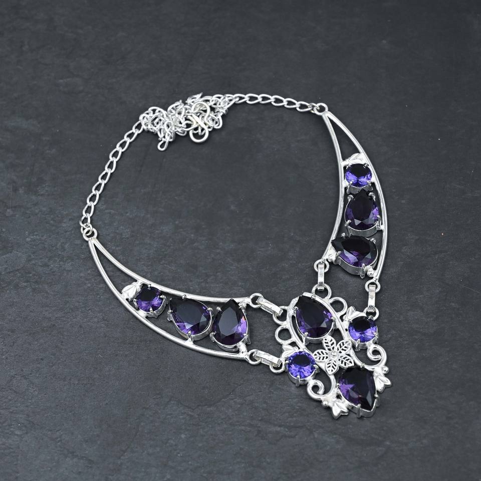 Amethyst Lab Created Pear Necklace 10x14mm Blue Stone Sterling Silver 18 Inch Luxury Wedding Gift Jewelry