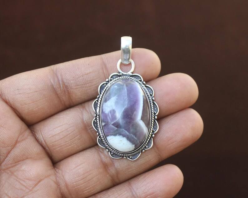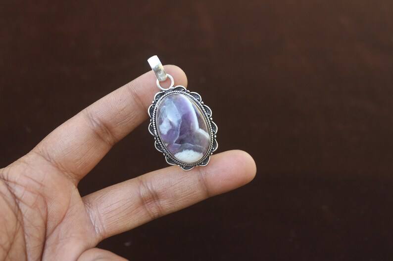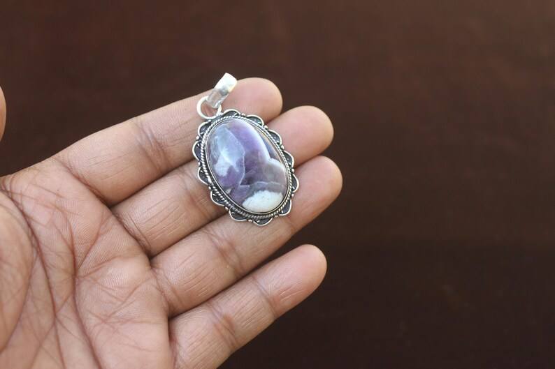 Amethyst Less Gemstone Pendant 925 Silver Tribal Jewelry Handmade Boho Necklace Unique Gift For Mom