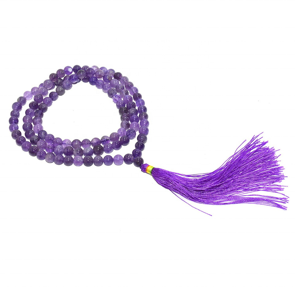 Amethyst Mala String 108 Beads Size - 8 mm | Amethyst Crystal Spiritual Mala