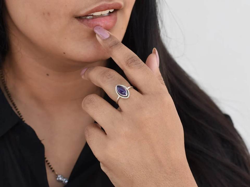 Amethyst Marquise Ring 925 Sterling Silver Handmade Purple Gemstone Jewelry Women Statement Ring Boho Silver Ring Gift For Her