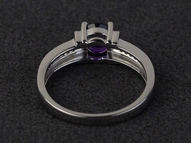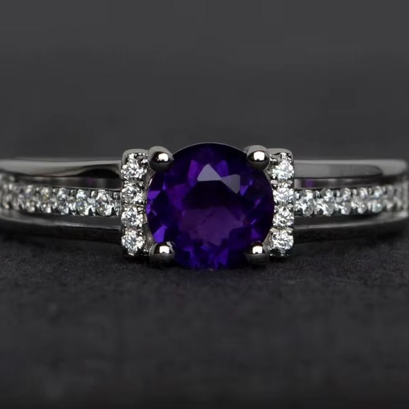 Amethyst Ring Genuine Purple Gemstone Engagement Ring Round Cut February Birthstone Jewelry
