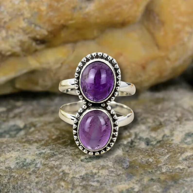 Amethyst Ring Natural Gemstone Handmade Crystal Ring for Women Custom Size Anniversary Gift Jewelry