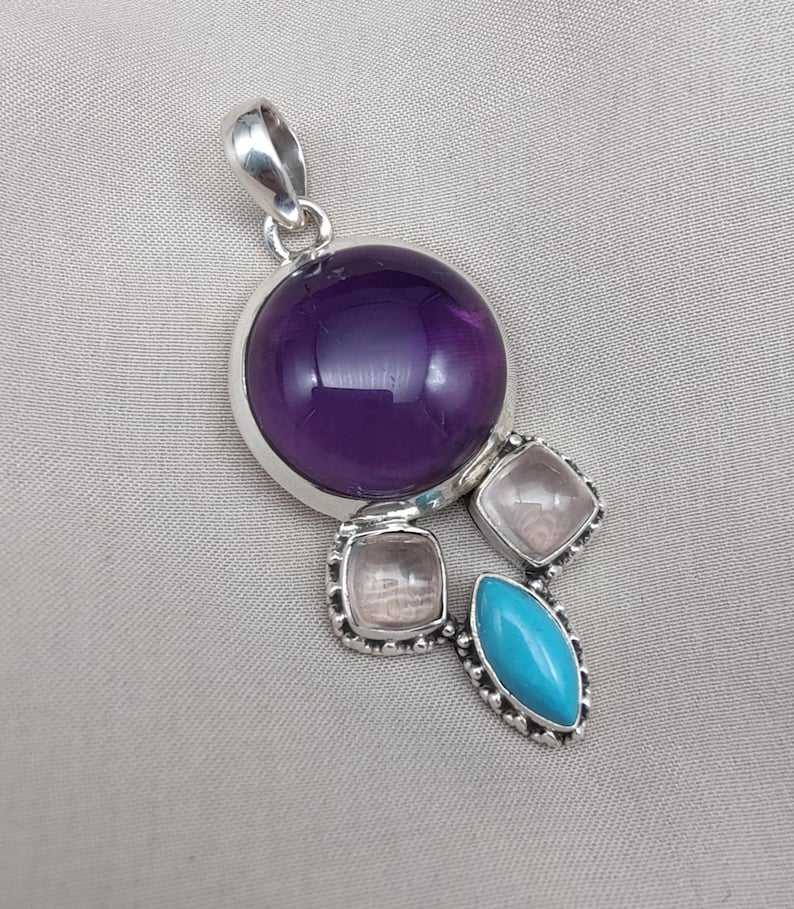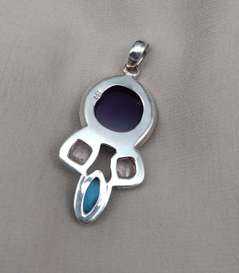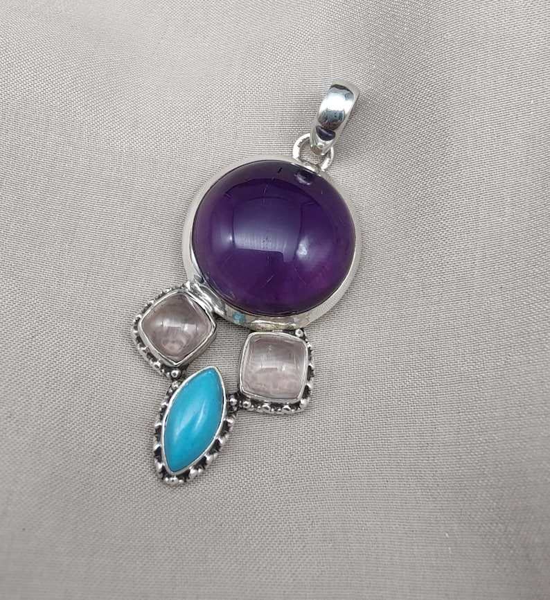 Amethyst Rose Quartz Turquoise pendant with sparkling stones