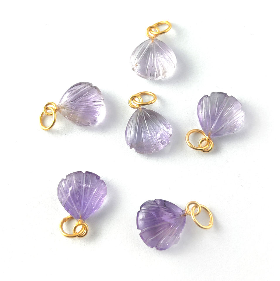 Amethyst Seashell Carved Pendant Charm Healing Crystal 925 Sterling Silver Gold Vermeil 12mm Third Party Certified Unisex