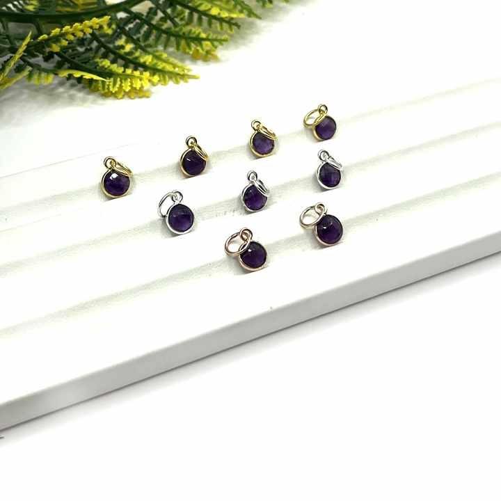 Amethyst Tiny Bezel Pendant Sterling Silver 6mm Faceted Round Birthstone Charm Gold Plated Handmade Stones Jewelry Making