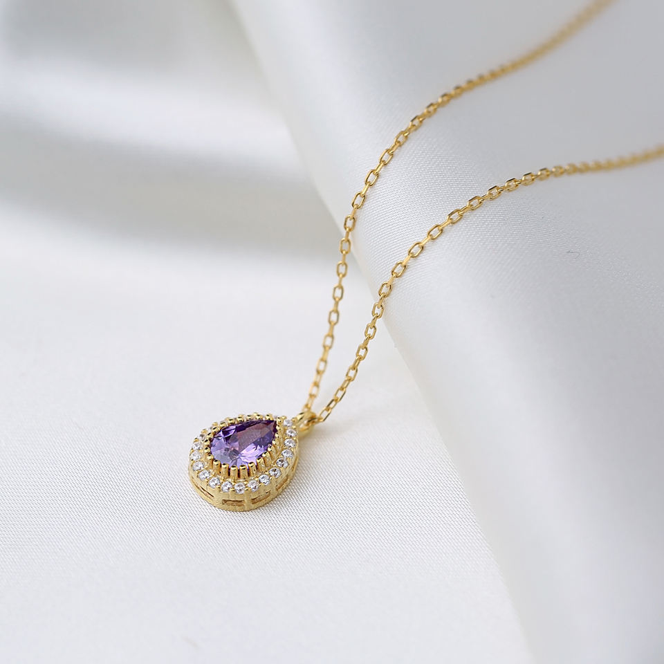 Amethyst with Zircon Stone Pear Shape Charm Necklace Woman Pendant Turkish Handmade Wholesale Jewelry 925 Sterling Silver