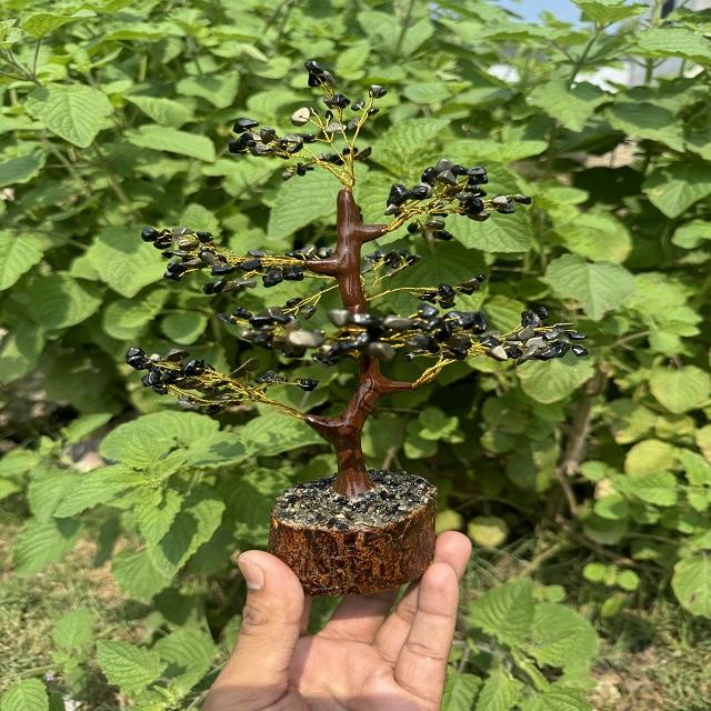 Amezing Combo India 300 Chip Bead Figurine Pyrite Black Tourmaline Gemstone Tree Semi-Precious Stone Craft Feng Shui Handmade