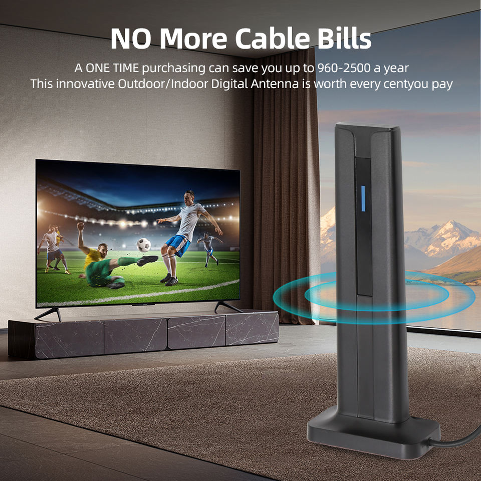Amplified Indoor Outdoor Digital Tv Antenna Signal Booster up to 275+ Miles Support 8K 4K Full HD with 16ft Coaxial Cable