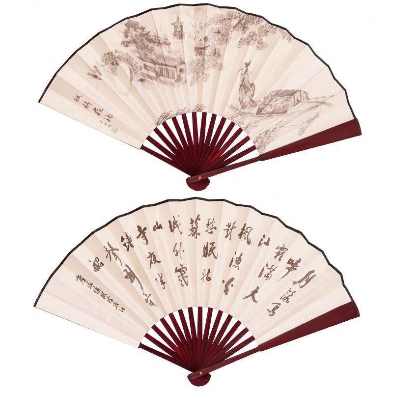 An Elegant Chinese Silk Folding Fan - Waterproof, Tear Resistant, Portable and Lightweight, Designed with Fabric Shade Material