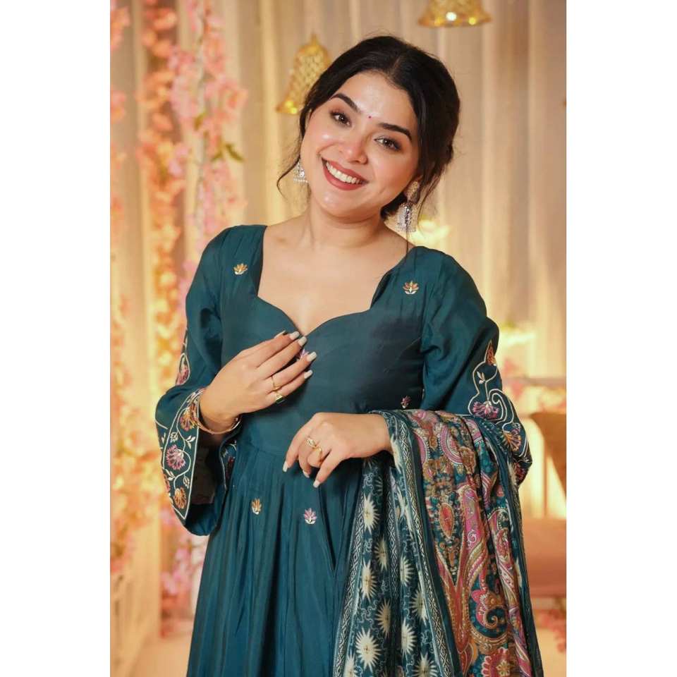 Anarkali Gown and Dupatta with Embroidery Sequence Work for Parties and Proms