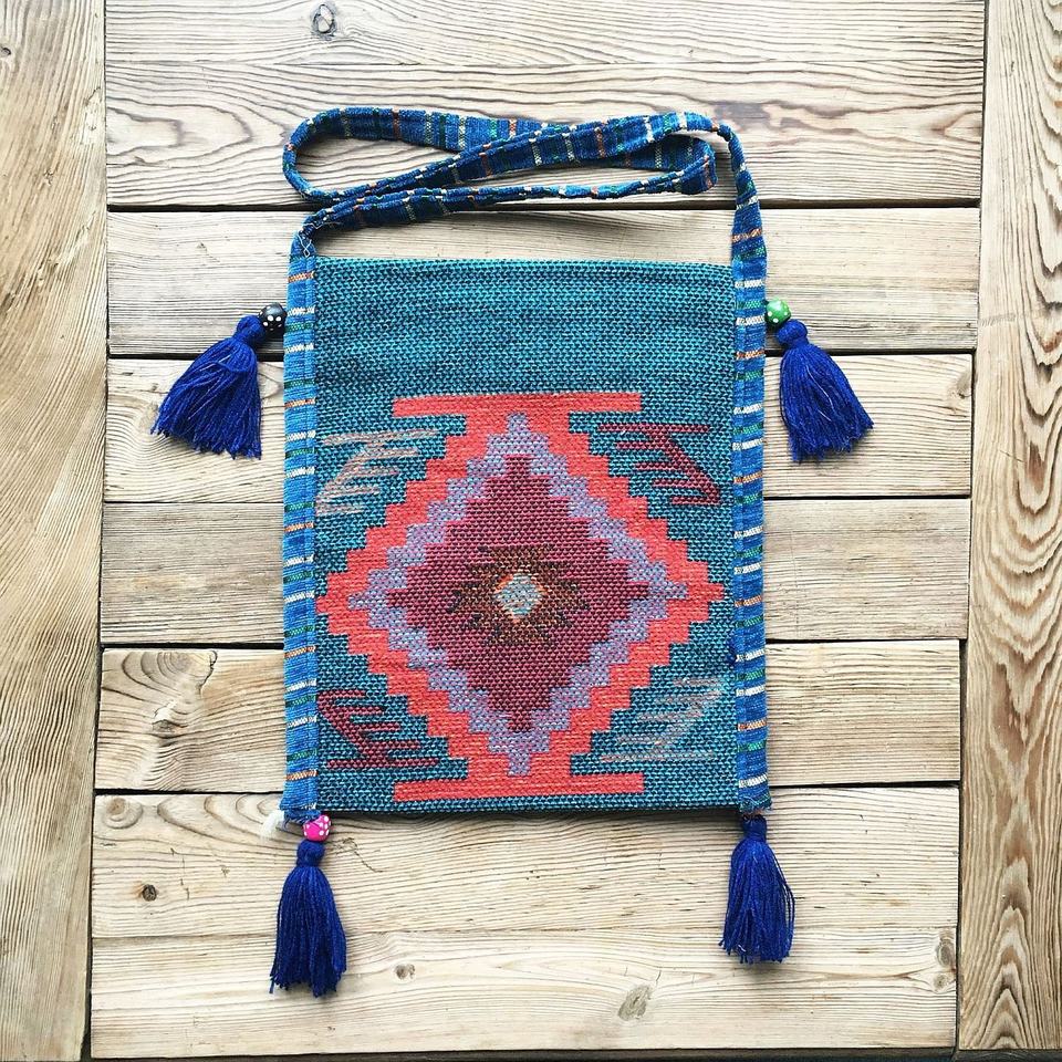 Anatolian Oriental Authentic Patterned Saddlebag Blue