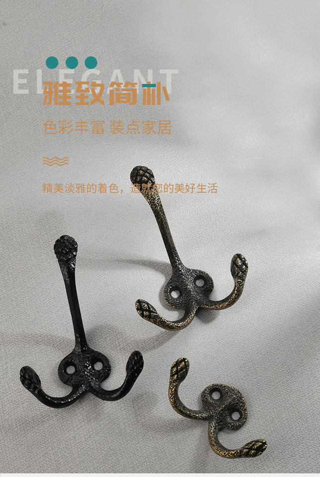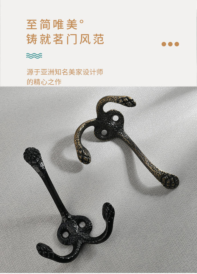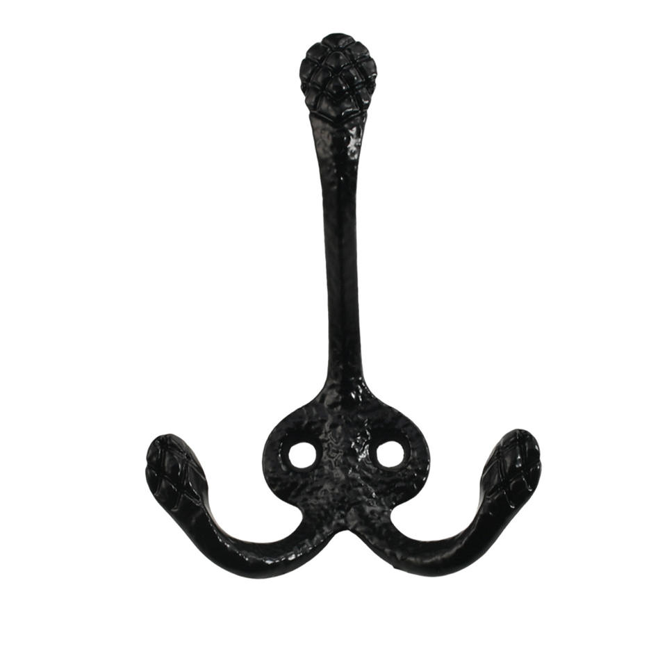 Ancient-style hook for cabinets and wardrobes black zinc alloy clothes hanger with decorative patterns double hooks