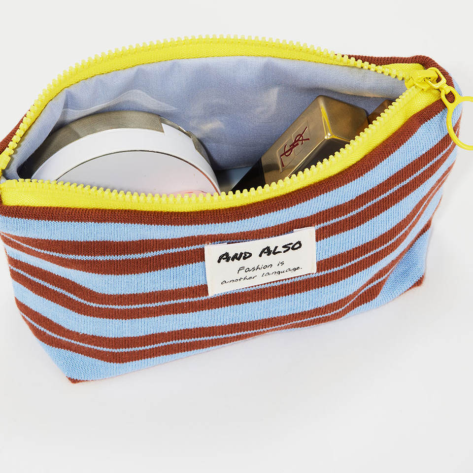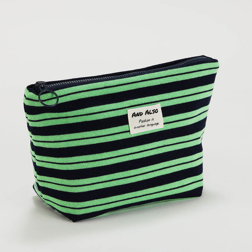 [And Also] Classic Stripe Travel Pouch Lightweight Zipper Bag Compact Cosmetic Organizer Reusable Storage for Toiletries