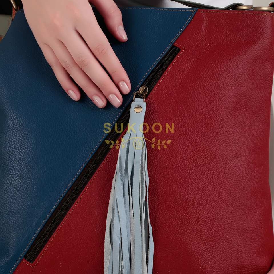 Ando Retro Patchwork Genuine Leather Tote Bag for Women Large Capacity Crossbody Handbag with Messenger Design for Travel