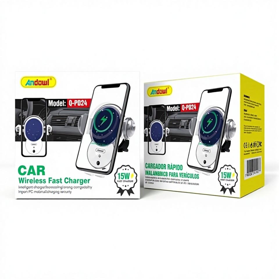 Andowl Car Wireless Charger Q-PD24 15W Fast Charging QC 3.0 1 Port 12-24V Input