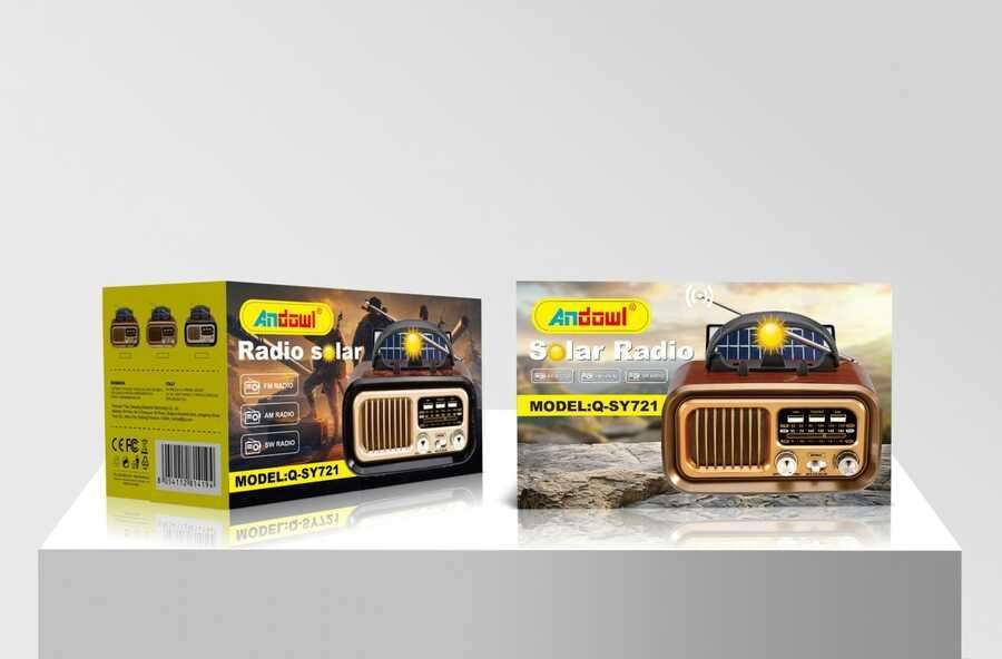 Andowl Solar Radio A-87781 Rechargeable Battery 5V DC AM/FM Portable with Built-in Speaker Plastic Material FM Range 64-108MHz