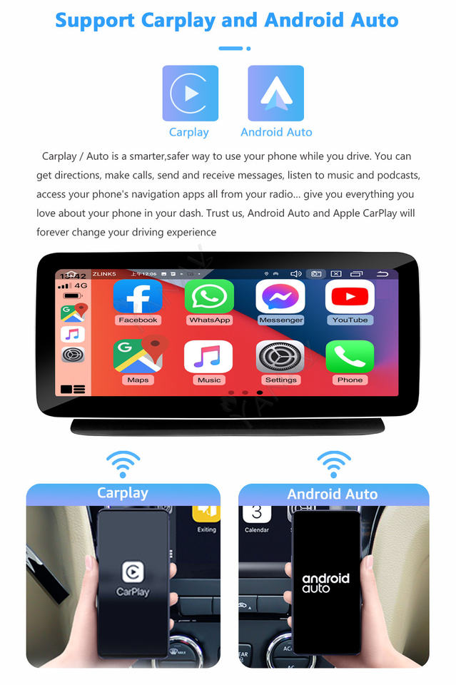 GPS, DSP, CarPlay, android auto, picture in picture, Split Screen, Car Steering Wheel ControlFunction