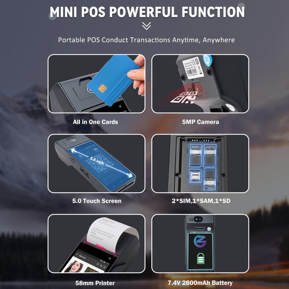 Android All in One Handheld Pos with Printer Sdk for Portable Pos Machine with Fingerprint Module Reader Ship From Shenzhen