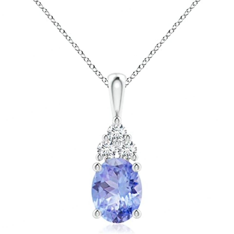 Angara Natural Tanzanite Solitaire Pendant Necklace for Women Girls in 14K Solid Gold Platinum