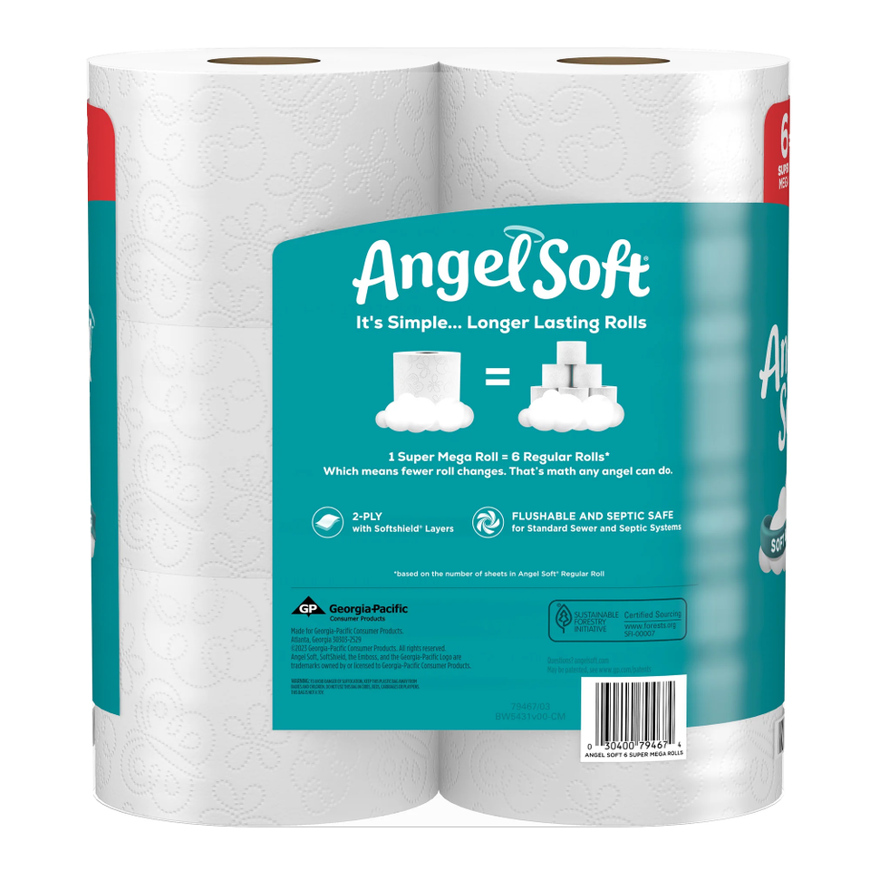 Angel Soft 2-Ply Toilet Paper, 6 Super Mega Rolls