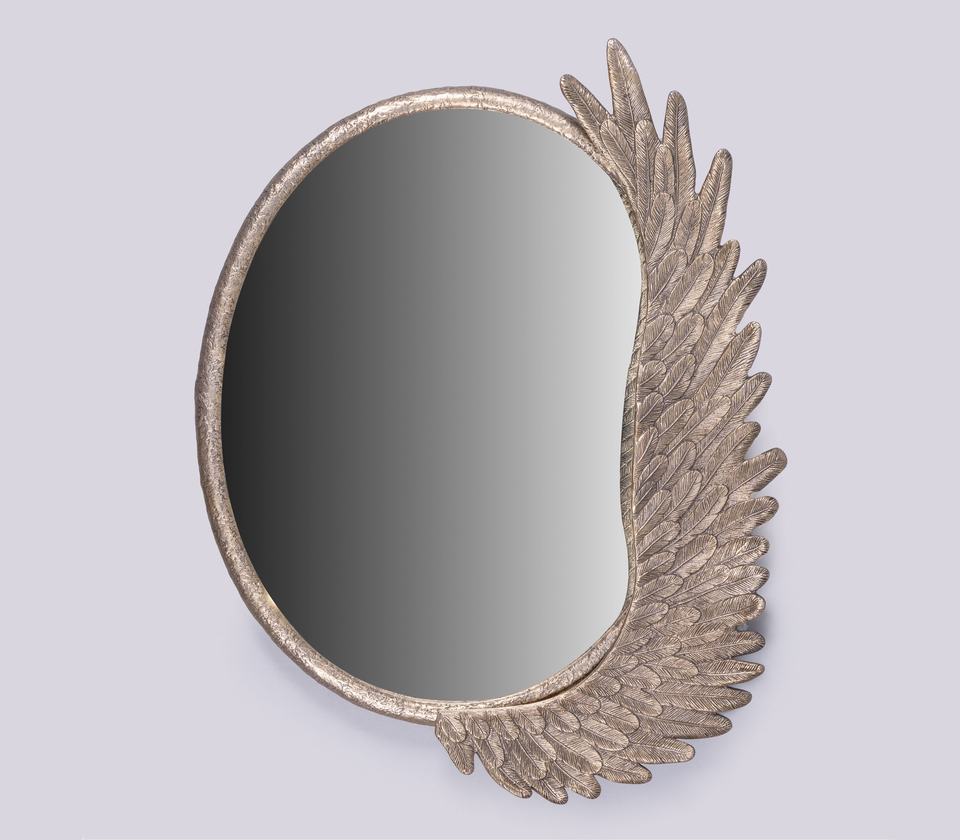 Angel Wing Oval Wall Mirror Handcrafted Gold Feather Frame Mirror for Luxury Home Deco Living Room Bedroom Hallway