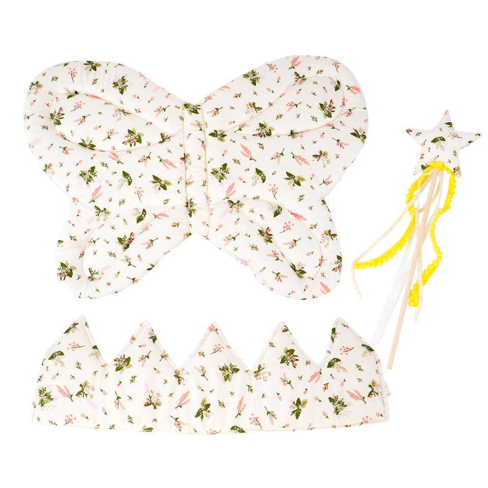 Angel Wings & Butterfly Wings Set Christmas Kids Cosplay Costumes 3-Piece Flower Headband Fairy Wand for Girls