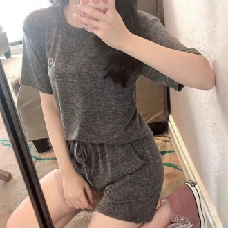 Angel Women's Short Sleeve Set Melange Fabric Sleep Pajamas with Pants