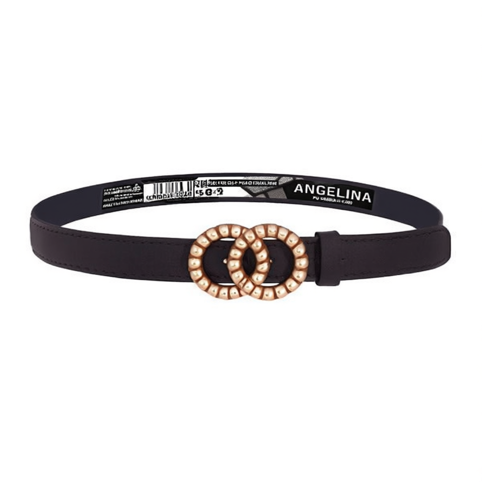 Angelina Women PU Leather Belt 3cm Double Circle Buckle Slim Waistband For Jeans Pants Fashion Accessory