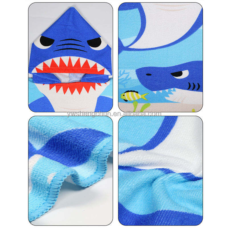 Animal Embroidery Compressed Polyester Hooded Towels Kids Quick-Dry Beach Towel Poncho