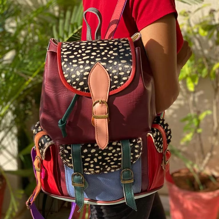 Animal Fur Cowhide Leather Backpack Rucksack Bag