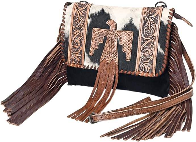 Animal Fur Leather Sling Bag Hand Tooled Handbag Women Leather Purse Cow Girls Bags Purse