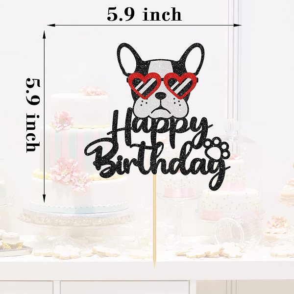 Animal Pet Theme French Bulldog Cake Topper For Puppy Birthday Party Supplies With Black And Red Glitter Design