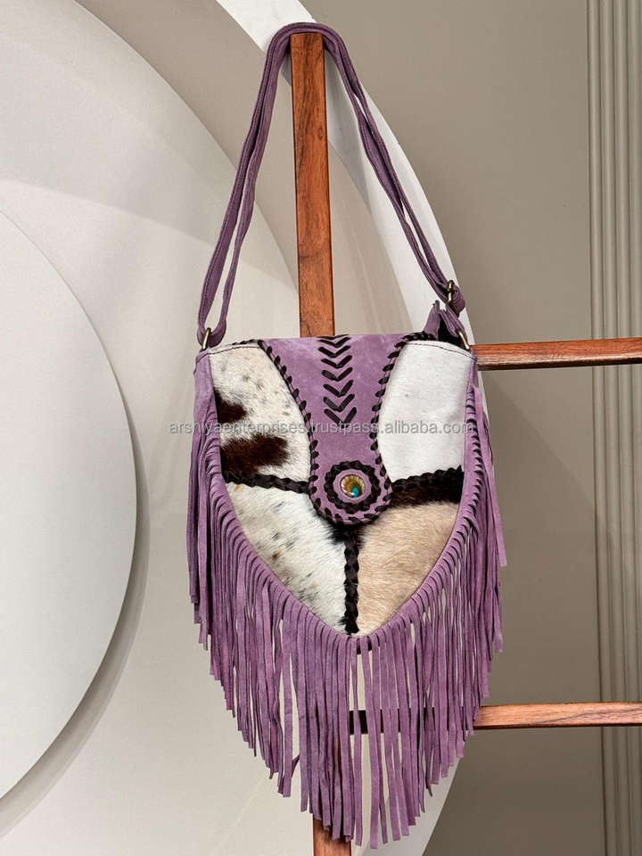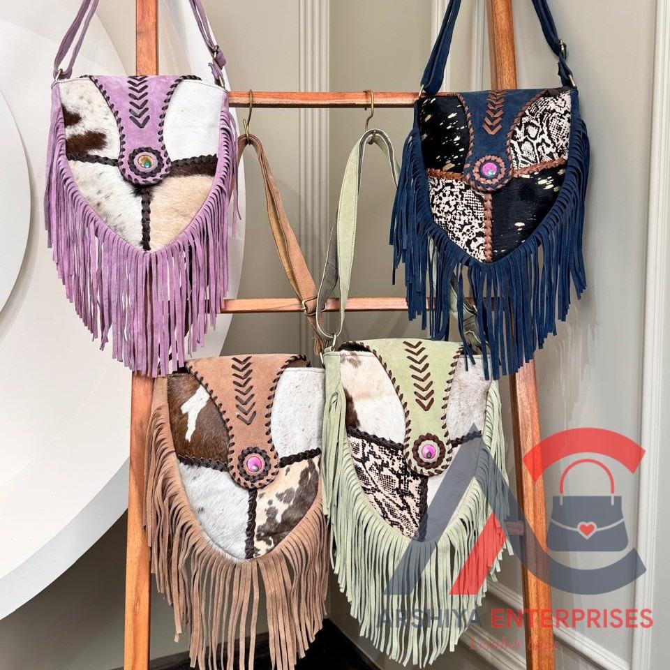 Animal Print & Cowhide Leather Crossbody Purse Western Women Bag With Fringes Genuine Suede Leather Real Hair on Cow Hide Purse