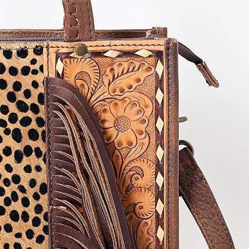 Animal Print Tote Bag Latest Western Weekender Hand Bags Designer Tooled Hair on Cowhide Stylish Fringe Bag With Leather Handles