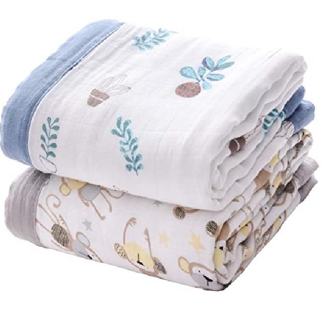 Animal Printed New Flower Pattern 2 Layers 100% Organic Cotton GOTS Certificate Unisex Super Soft Wrap Swaddle Muslin Baby Cloth